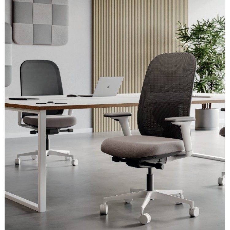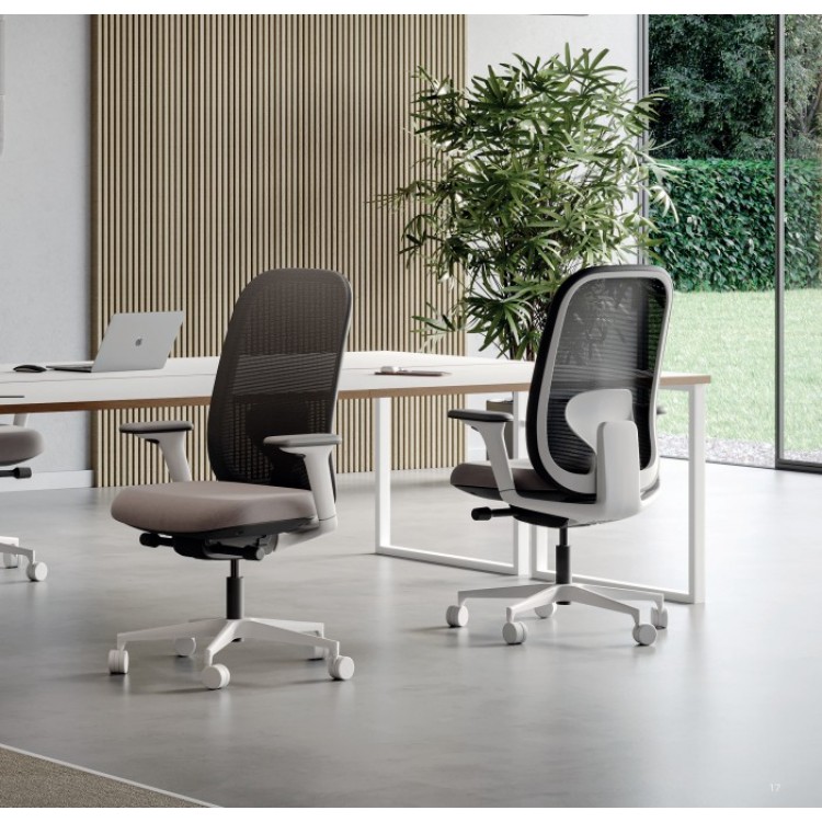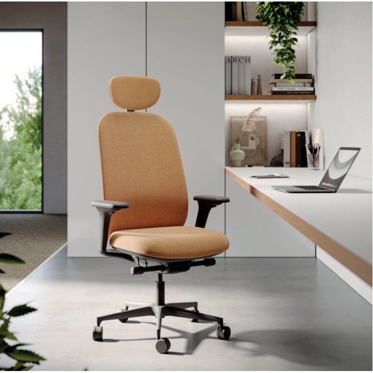 De Evo bureaustoel is een ergonomische bureaustoel ontworpen voor comfort, functionaliteit en een strak design. Perfect geschikt voor dagelijks intensief gebruik op kantoor of de thuiswerkplek. De Evo bureaustoel wordt gekenmerkt door de lijn van de rugleuning die verbonden is met de geintegreerde 4D verstelbare armleuningen. De rugleuning in net of stof is in hoogte verstelbaar en voorzien van een lendensteun.