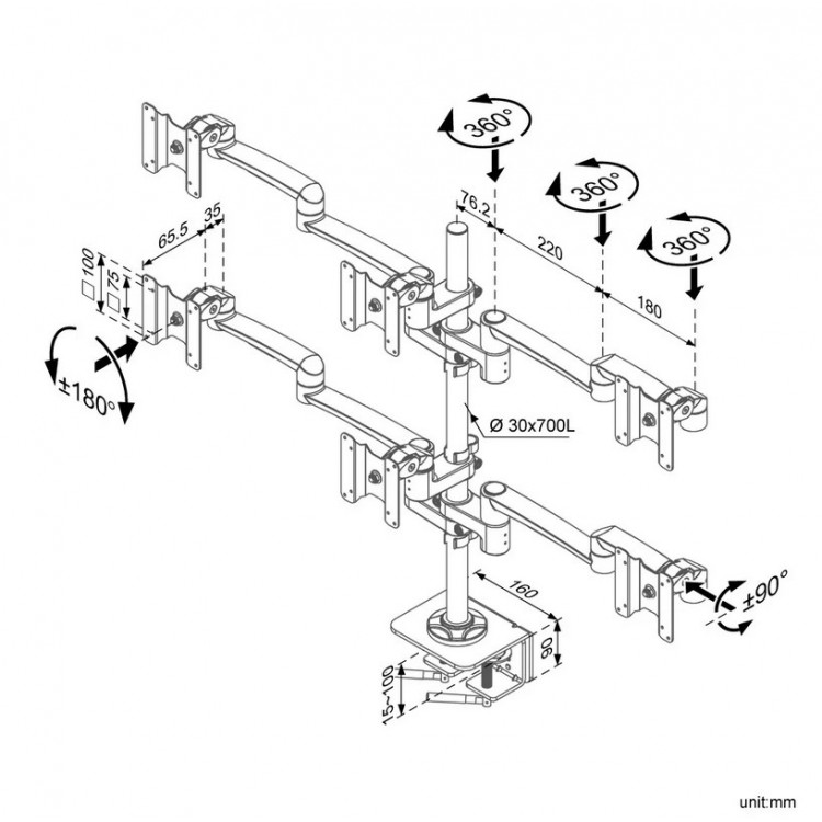 Joint Six is geschikt voor maar liefst 6 monitoren en kan een per monitor een gewicht aan van 6kg. Is eenvoudig met 1 hand in verschillende hoogtes aan te passen aan de behoefte van de gebruiker. Breng de monitorarm op de juiste hoogte om de perfecte en ergonomische kijkhoogte in te stellen en verminder oog-, rug- en nekbelasting.