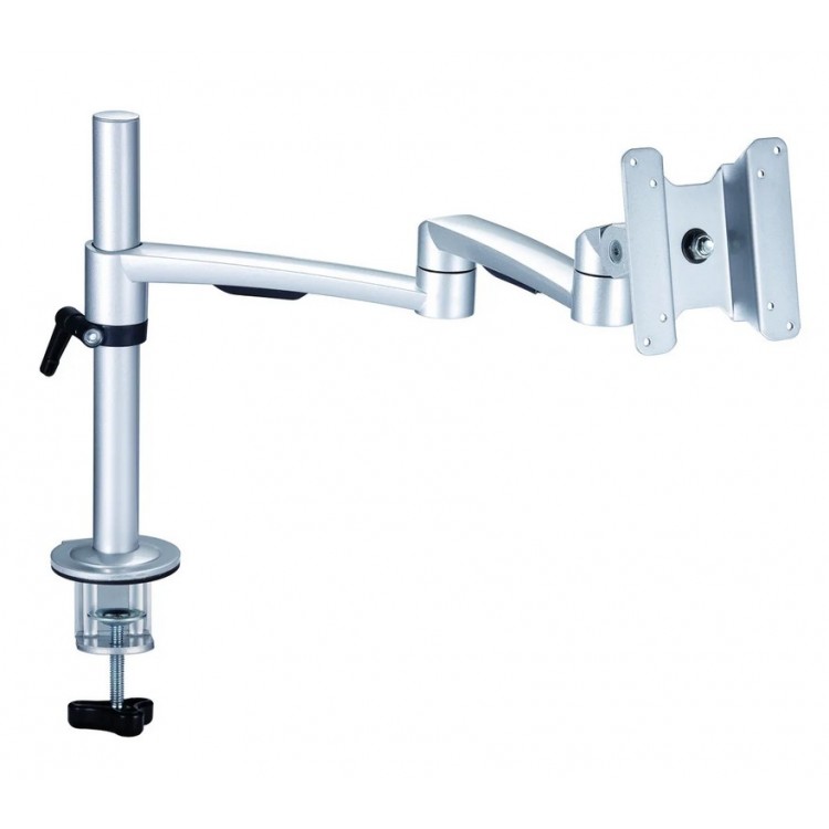 Verkrijgbaar in de kleur zilver. Geschikt voor VESA 75mm en 100mm. Standaard kan de monitorarm bevestigd worden met een bureauklem. Wilt u liever een bevestiging d.m.v. een doorvoerbeugel met een gat in het blad? Neem contact met ons op voor de mogelijkheden.