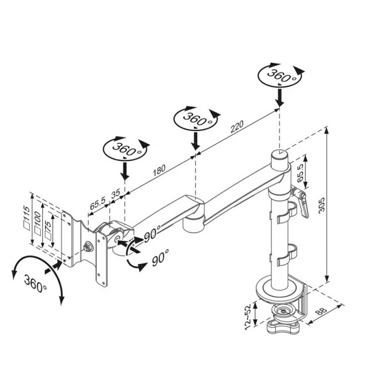 Joint is geschikt voor 1 monitor en kan een gewicht aan van maximaal 14kg. Is eenvoudig met 1 hand in verschillende hoogtes aan te passen aan de behoefte van de gebruiker. Breng de monitorarm op de juiste hoogte om de perfecte en ergonomische kijkhoogte in te stellen en verminder oog-, rug- en nekbelasting. In hoogte verstelbaar tot 305mm.