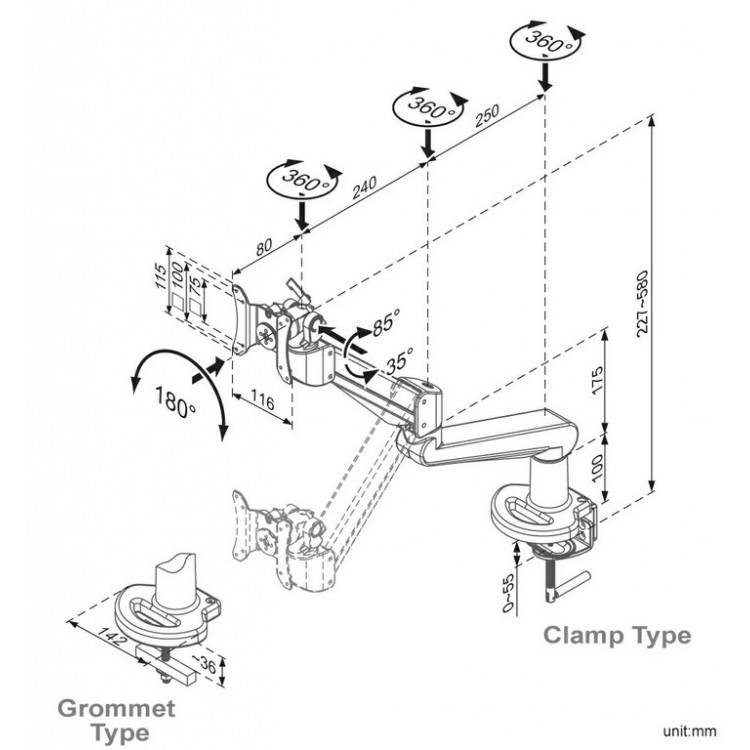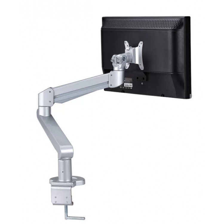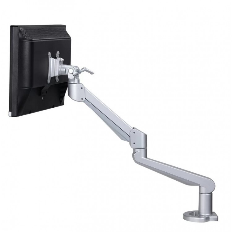 Verder kan de monitorarm een gewicht aan tot maar liefst 19kg en is leverbaar in de kleuren zilver, wit en zwart. Standaard wordt de monitorarm bevestigd met een bureauklem. Wilt u liever een bevestiging d.m.v. een doorvoerbeugel met een gat in het blad? Neem contact met ons op voor de mogelijkheden.
