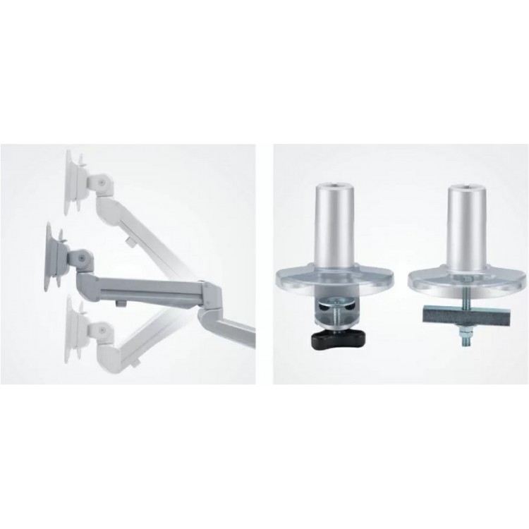 Verder kan de monitorarm een gewicht aan tot 8kg per monitor en is leverbaar in de kleuren zilver, wit en zwart. Standaard wordt de monitorarm bevestigd met een bureauklem. Wilt u liever een bevestiging d.m.v. een doorvoerbeugel met een gat in het blad? Neem contact met ons op voor de mogelijkheden.