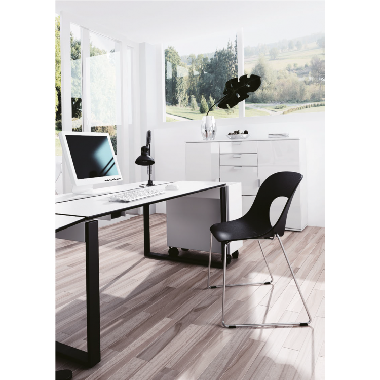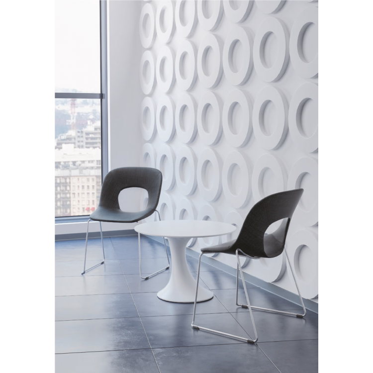 De Wize Office Chairs Hole heeft een gestoffeerde zitschaal. Hierbij bestaat de kuip uit polypropyleen, maar er bevindt zich een laag van schuim onder de stof voor extra comfort. De gestoffeerde versie is beschikbaar in de stofkleuren: zwart, blauw, groen of roze. Naast de vergaderstoel is er ook een kantinestoel aanwezig met een zitschaal van polypropyleen. De Hole kantinestoel is stapelbaar is beschikbaar in de kleuren: wit, zwart, grijs of marineblauw. Het is ook mogelijk om de zitschaal te geheel te stofferen, als vergaderstoel.De Hole stoel is comfortabel en heeft een gat in de rugleuning. De Hole sledestoel kan voor meerdere doeleinden gebruikt worden zoals kantinestoel of vergaderstoel. De stoel heeft geen armleuningen en heeft standaard een slede frame.