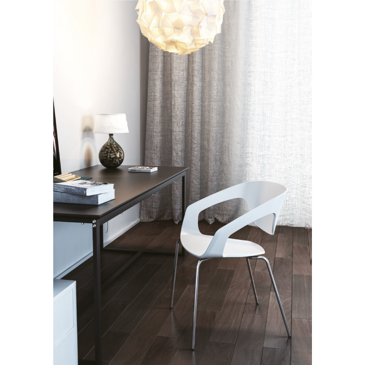 De 4-poot Line kantinestoel is verkrijgbaar met een chrome onderstel of houten onderstel. De houten poten hebben een dikte van 33mm. Er zitten polypropyleen glijders onder de Line stoel om de grond te beschermen tegen krassen.