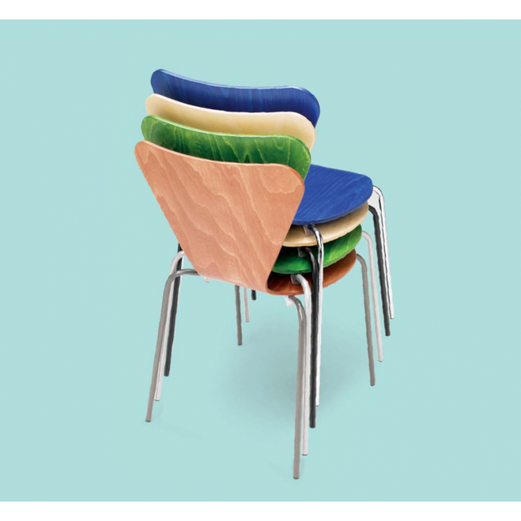 Wize Office Shell is een betaalbaar alternatief voor de ‘’vlinderstoel’’ van Fritz Hansen. De Shell stapelstoel is leverbaar in 4 kuipkleuren: beuken naturel, peren, groen gebeitst en blauw gebeitst. Standaard wordt deze 4-pootstoel kantine – en zaalstoel geleverd met een zwart frame, maar de stapelbare Shell stoel is ook leverbaar met zilvergrijs, grafiet of chroom frame.