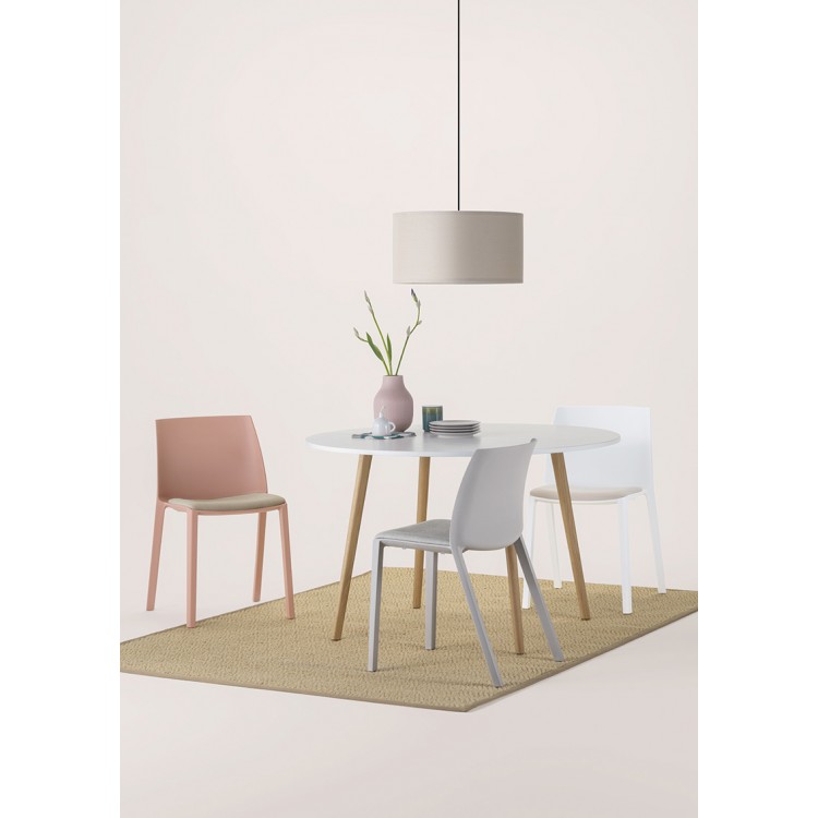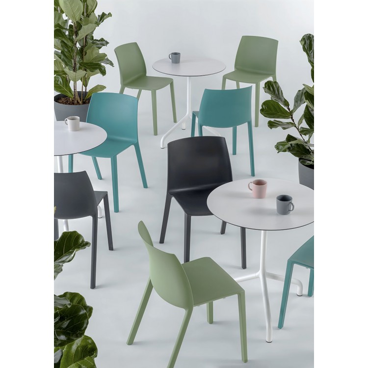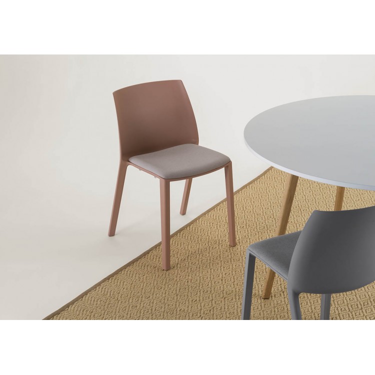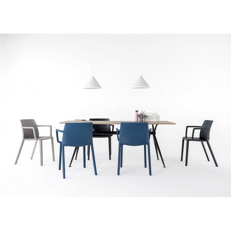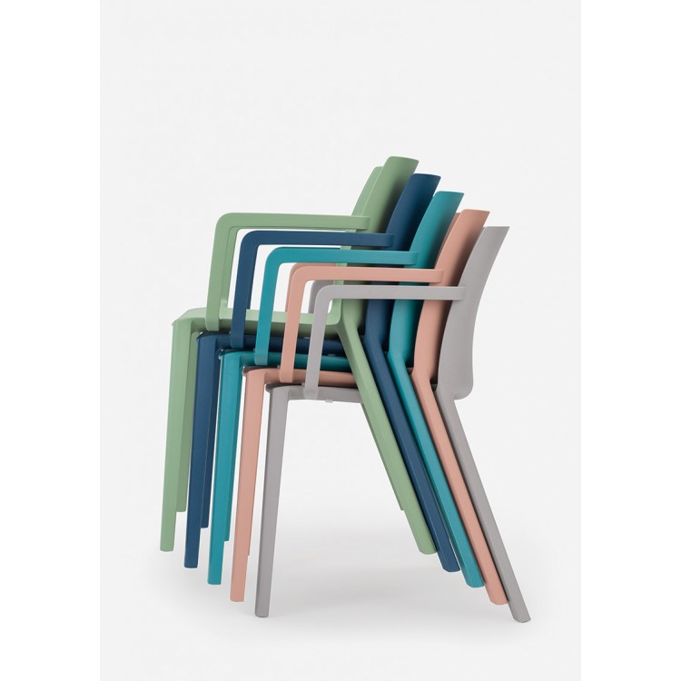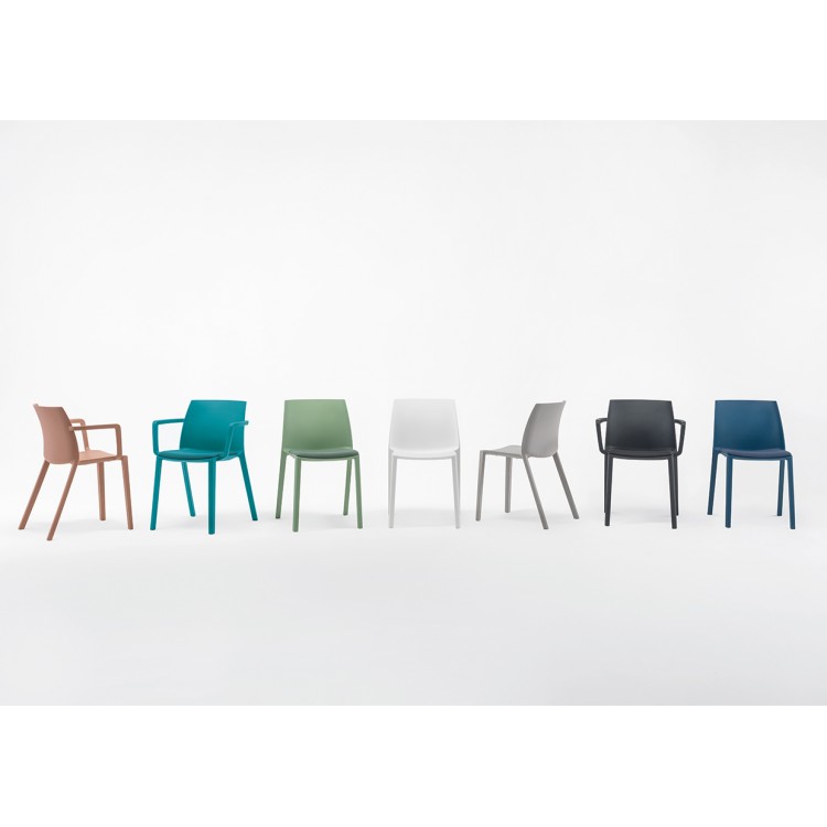 Sitt is van polypropyleen (100% gerecyclede grondstof) en is optioneel verkrijgbaar met gestoffeerde zitting en armleuningen.