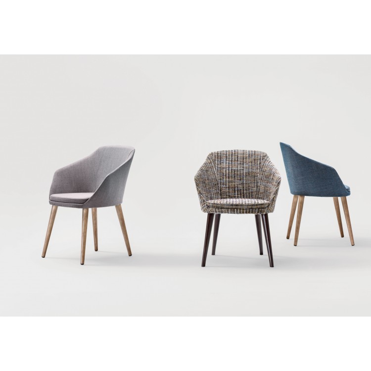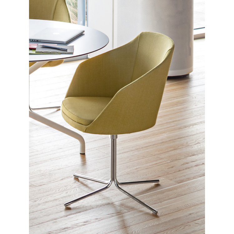 De Sophi serie van Wize Office bestaat uit een draaibare bezoekersstoel op een chromen 4-teens voetkruis. Ook is een 4 poots versie met houten poten, die zowel in het eiken natuur als donker walnoot leverbaar zijn. Hoogte 82 cm, breedte 63 cm, diepte 60 cm en zithoogte 48 cm. De stoel is voorzien van koudschuim voor vormbehoud en comfort en stof naar keuze.