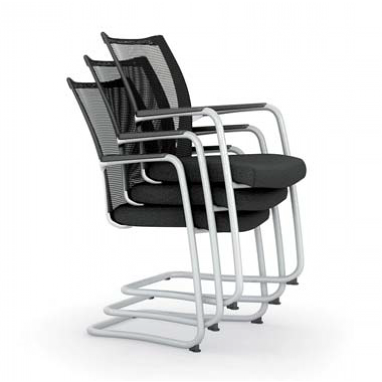 De Wize Office Flex bezoekersstoel is een stapelbare slede stoel zilvergrijs frame. De Flex sledestoel kan tot 3 hoog opgestapeld worden. Het frame heeft armsteunen van zwart polypropyleen. De zitting is beschikbaar in zwart stof en de rugleuning is beschikbaar in zwart mesh. De Flex stapelstoel heeft glijders van Polypropyleen.