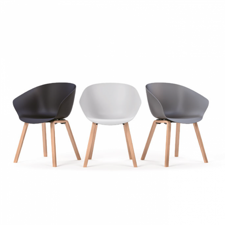 De Wize Office Wood is een comfortabele kantinestoel die eenvoudig te reinigen is. De Wood stoel is leverbaar met een slede frame of met een houten 4-poots frame. De zitting en rugleuning bestaan een schaal van polypropyleen.