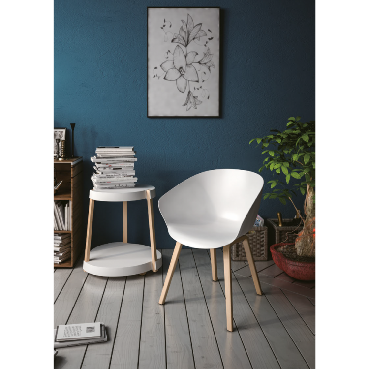 De 4-poot stoel heeft beuken houten poten van 33mm. Er zitten polypropyleen glijders onder de stoel om de vloer te beschermen tegen krassen.