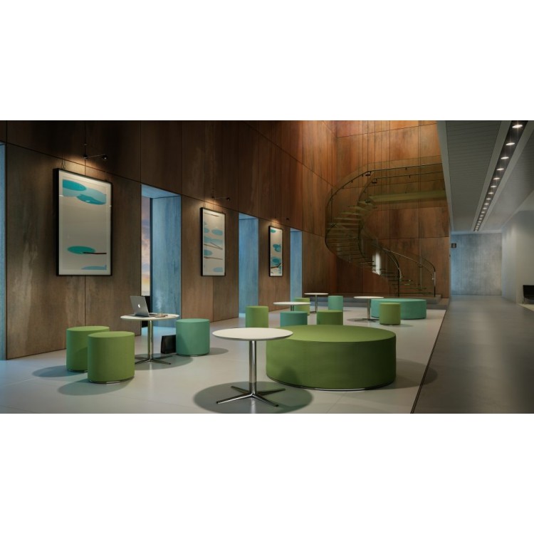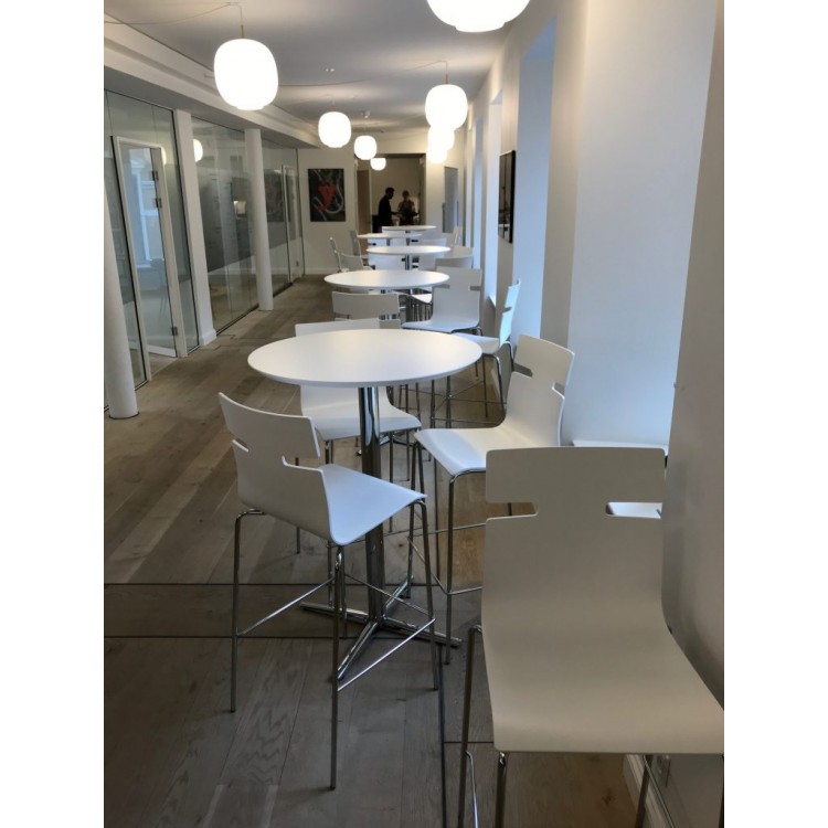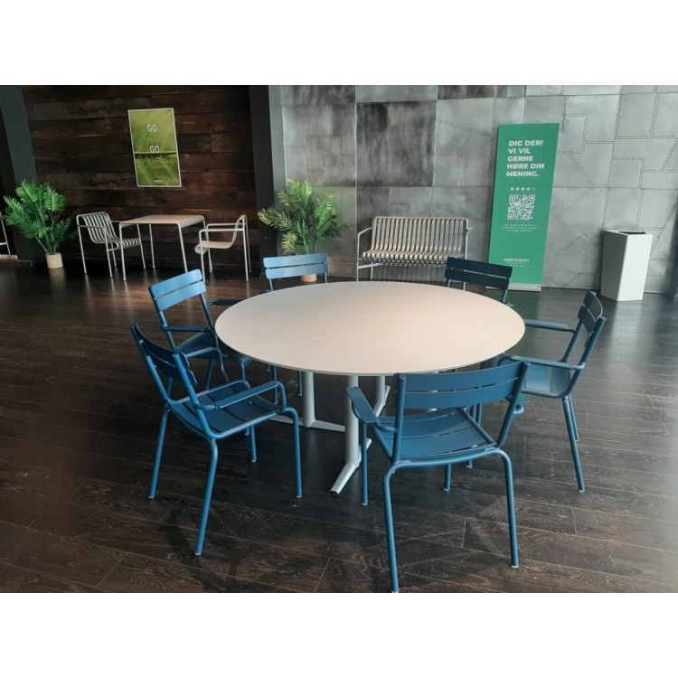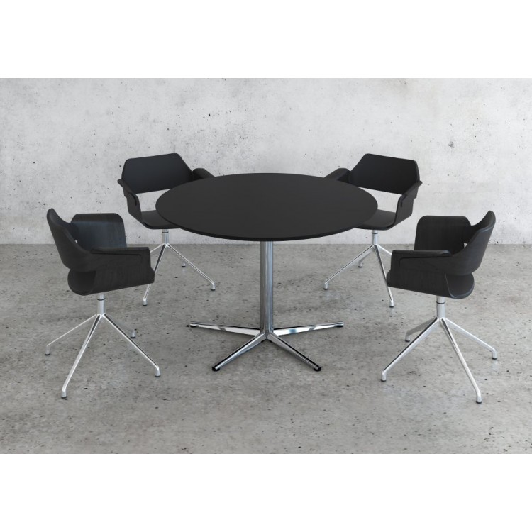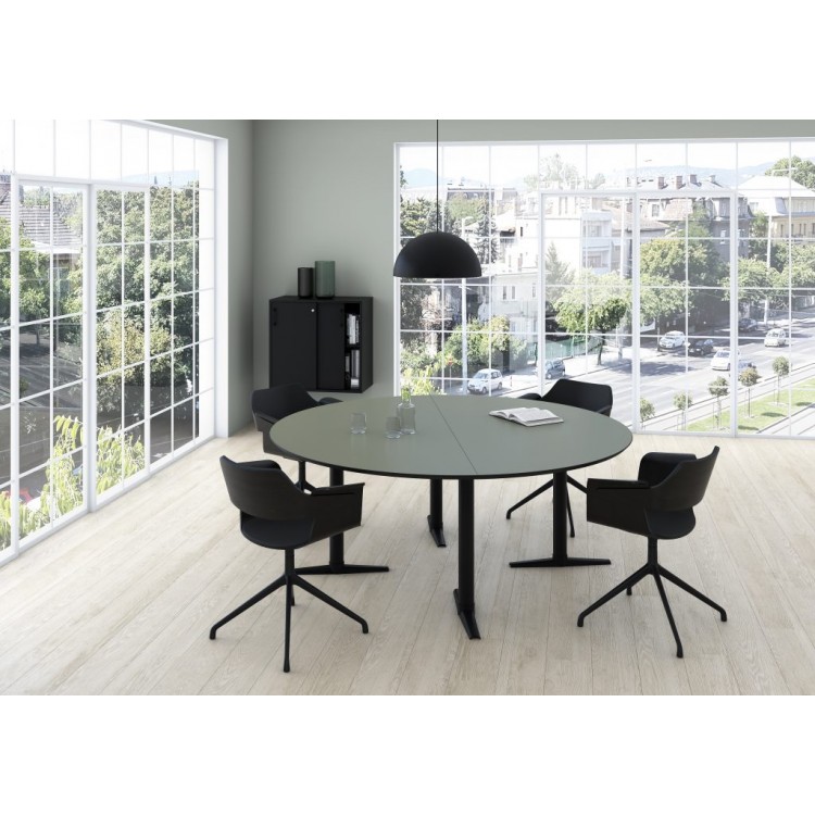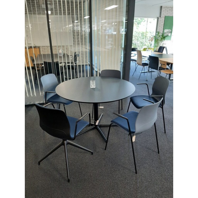 Er zijn tal van mogelijkheden om de kantine- en vergadertafels helemaal naar eigen wens samen te stellen. Het ronde tafelblad rust op een kolom met een 5-sterrenvoet of als rechte voet. Verkrijgbaar in diverse maten en afwerkingen. Ook zijn er veel verschillende accessoires om de tafel helemaal compleet te maken. Zo kunt u kiezen uit verschillende kabeldoorvoeren in het blad, kabelgoten, linoleum cleaner en nog veel meer.