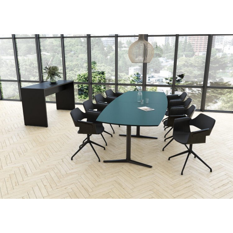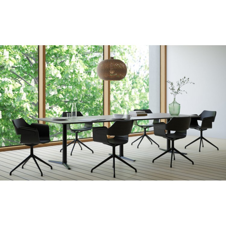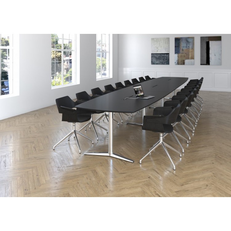 De vergadertafels van Transform zijn voorzien van elegante kolommen en rechthoekige of bootvormige tafelbladen. De karakteristieke poot in V-vorm onderscheid zich van andere tenen van onze vergadertafels.