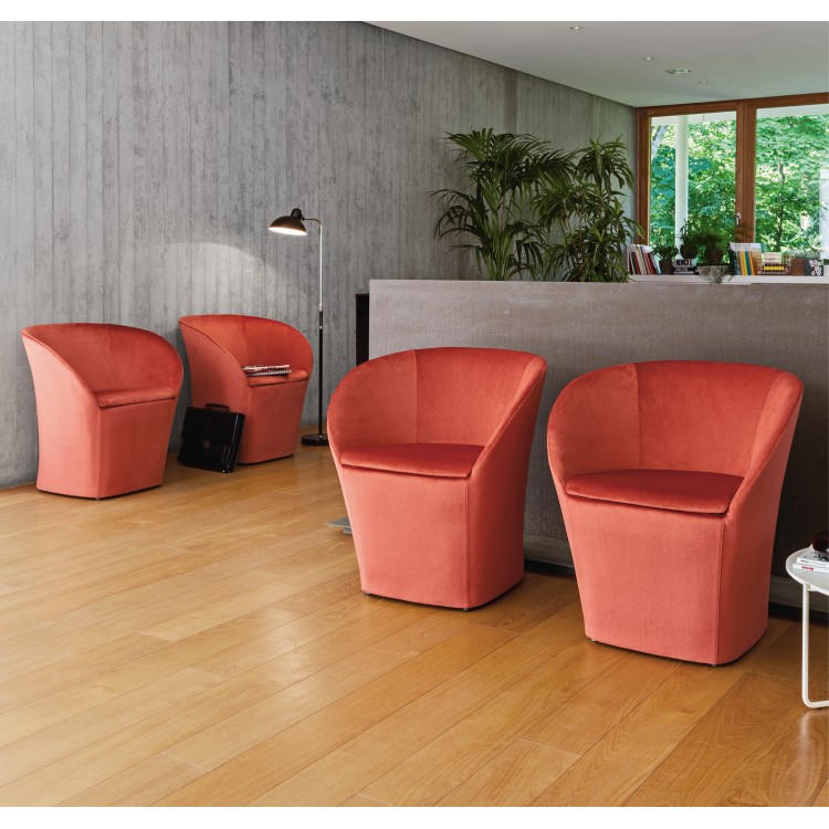 Tub chair is een comfortabele fauteuil die beschikbaar is voor alle soorten settingen. Van vergaderzaal tot wachtkamer. Door haar aangename vorm en de ronding van de rugleuning, biedt deze fauteuil een aangenaam moment van ontspanning. Verkrijgbaar met aanpasbare glijders of draaibare kolom met auto return. Beschikbaar in meerdere stofgroepen en kleuren.