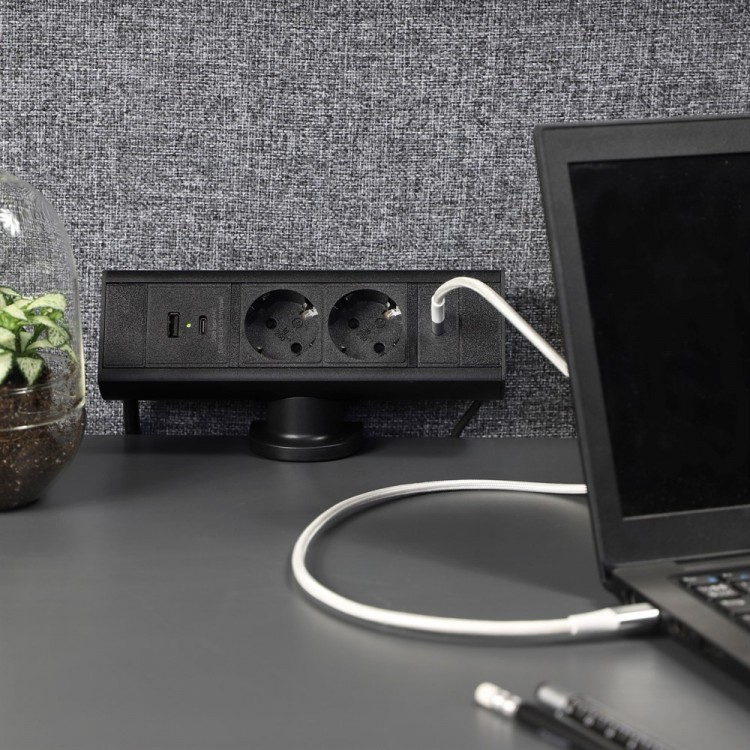 De Wize Office Desk Axess stroomvoorziening is ideaal voor uw werkplek. Door het gebruik van de Axessline Desk heeft u altijd stroomtoevoer tot uw beschikking door de plaatsing op het bureau. Eenvoudig te monteren op bijvoorbeeld de rand van een bureau (tot 50 mm) met de meegeleverde klem.