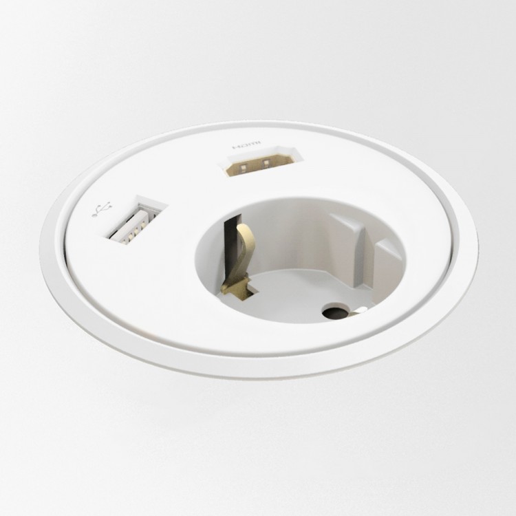 De Wize Office elektrapoint is een stroomvoorziening, die geschikt is voor zowel individuele bureaus als vergadertafels. De Elektrapoint biedt een compleet technische oplossing wanneer er een breed scala aan opties vereist is. Elektrapoint heeft een diameter van 79mm.