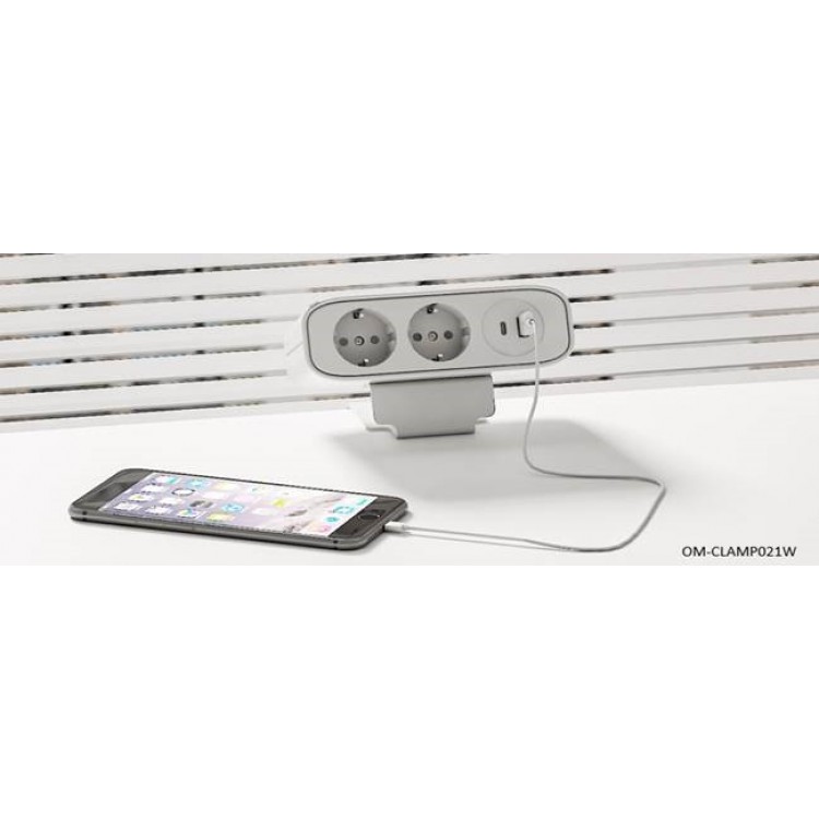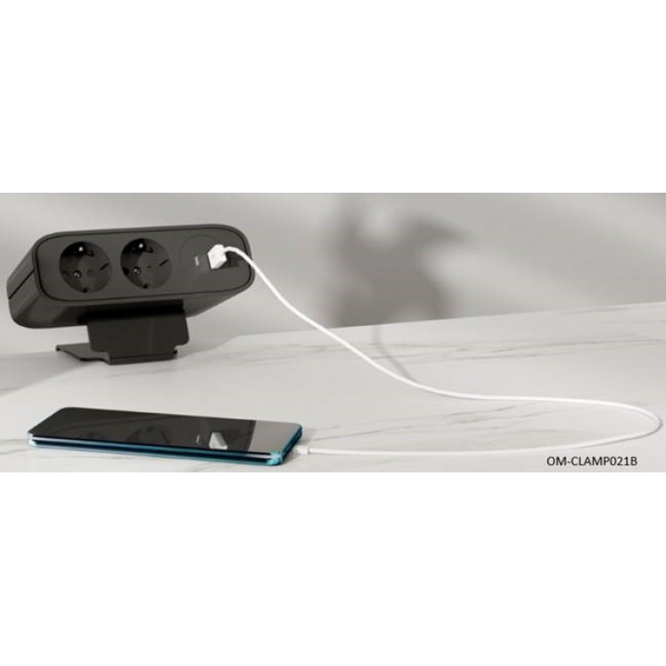 Perfect voor kantoren en vergaderruimtes. Het stopcontact wordt bevestigd met een klem aan de rand van het blad.