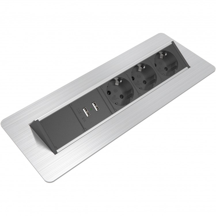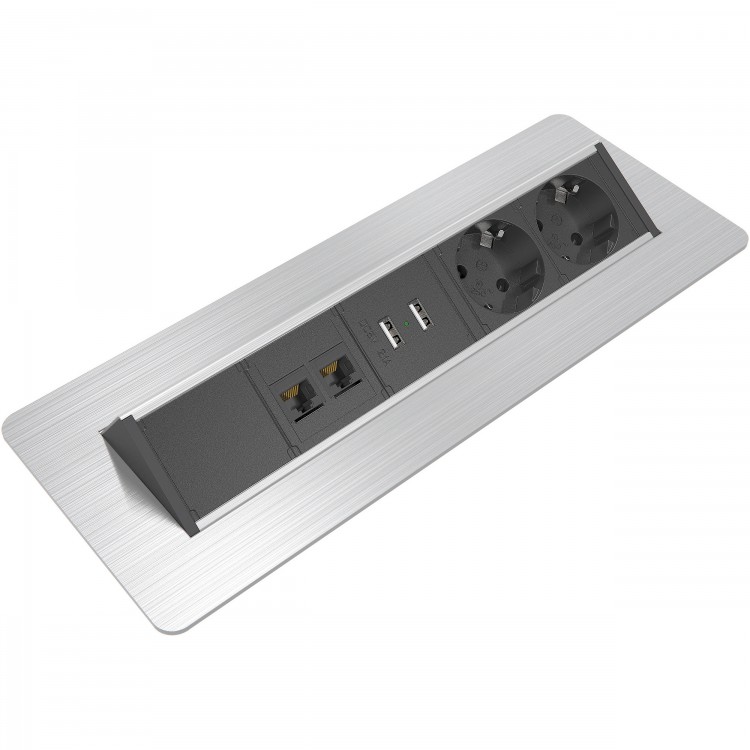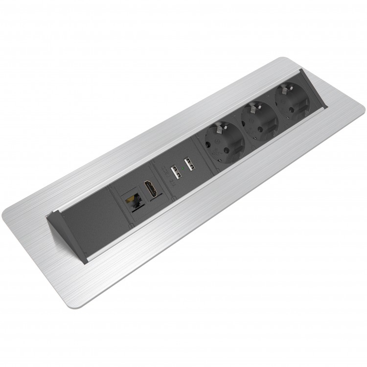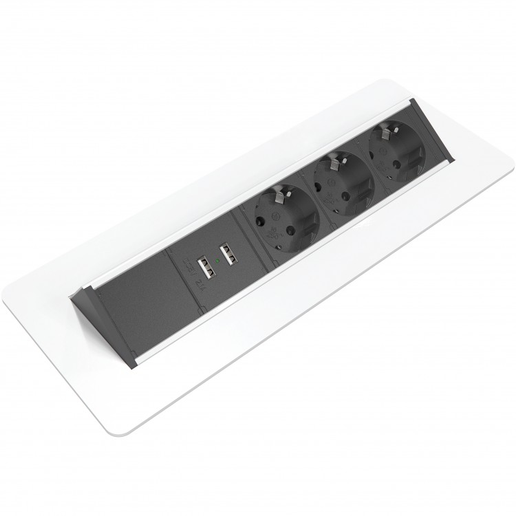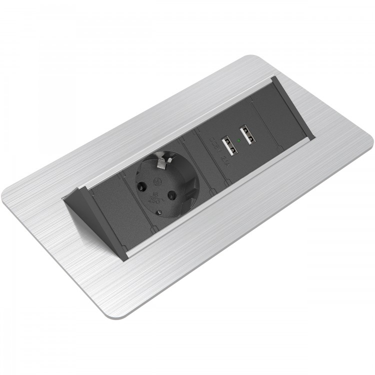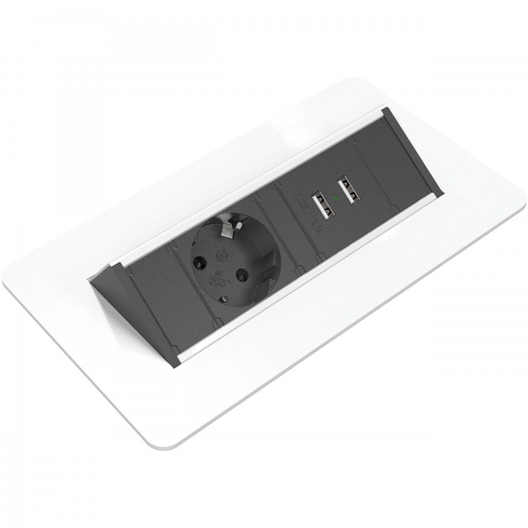 De Wize Office Quickbox biedt een eenvoudige en toegankelijke oplossing voor stroomaanvoer. Met een druk op de deksel opent hij automatisch door het veermechanisme. Onder dit deksel vindt u een breed scala aan technische opties zoals stroomaanvoer en usb poorten.