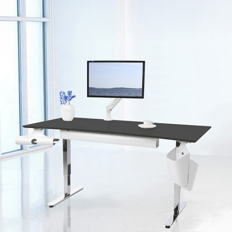 Wize Office Tray kan op drie niveaus worden ingesteld met drukknopje zonder dat u hierbij gereedschap hoeft te gebruiken. Hierdoor is het ook eenvoudig om de kabeldrager even te verwijderen zodat u bij de kabels kunt komen.