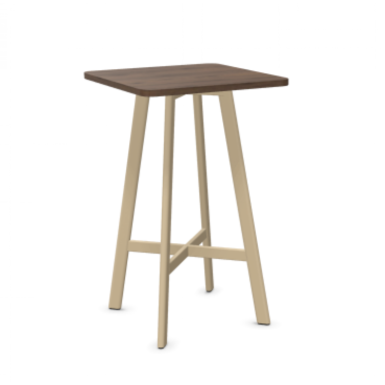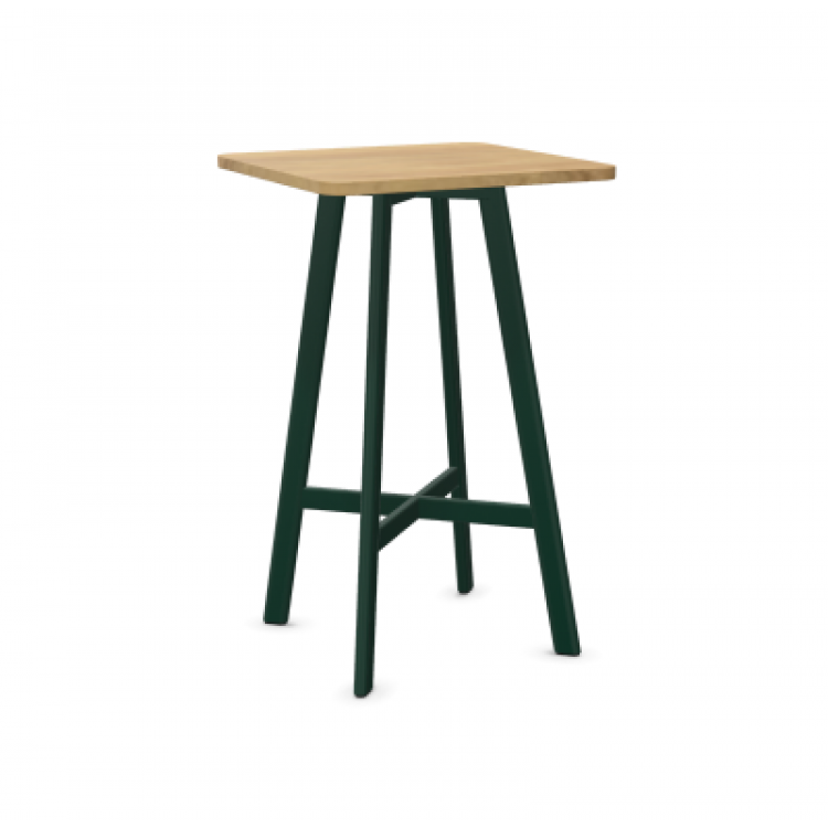 De poten van de tafel zijn er in 2 varianten: gepoedercoat metaal of gelakt hout verkrijgbaar in maar liefst 15 kleuren. Op het stevige frame rust een Ø90 of Ø125cm blad van 25 mm dik die verkrijgbaar is in melamine, fineer, nanolaminaat of HPL.
