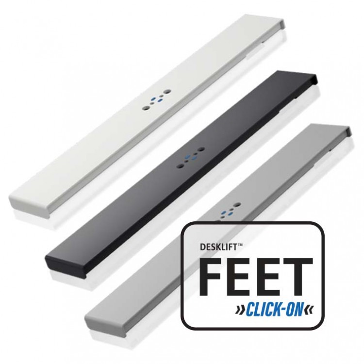 De Click on feet wordt eenvoudig gemonteerd zonder gereedschap en schroeven. De afmeting van de 'Click On' voet is 710x75 mm. De kleur opties voor het onderstel zijn: wit en zwart