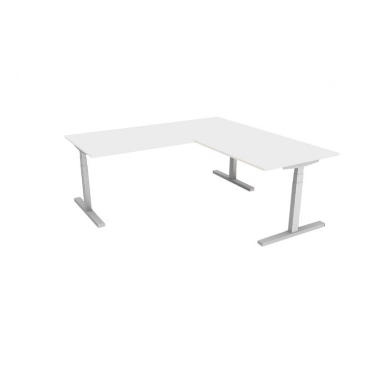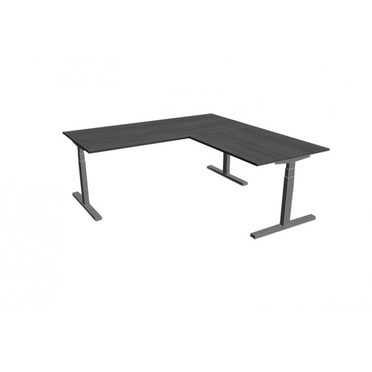 Het Stream hoek zit-sta bureau is een 3-traps hefkolom met een compacte motorbehuizing; de perfecte keuze voor een breed scala aan bureautoepassingen, variërend van industrie tot kantoorbureaus.